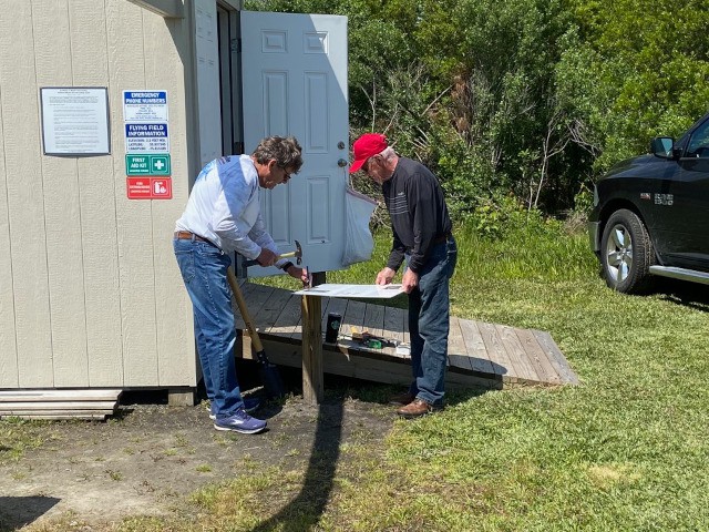We began work at the field in early April by demolishing and removing our old storage shed followed by the construction and installation of three new work tables during May, and relocating our flight stations. Additional projects in the future will include installing a new chain and signage at the field access, constructing new flight station fencing, replacing our worn windsock, and installing a geotextile runway.