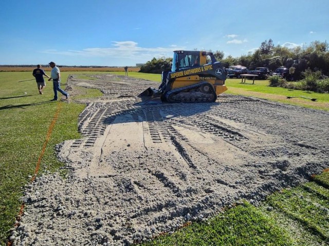 This new shed was a much-needed replacement for a smaller one that was over 20-years old and in a decrepit state located on the opposite side of the runway. The location was specifically selected to take advantage of the site's terrain which is susceptible to flooding during hurricanes and heavy periods of rain.