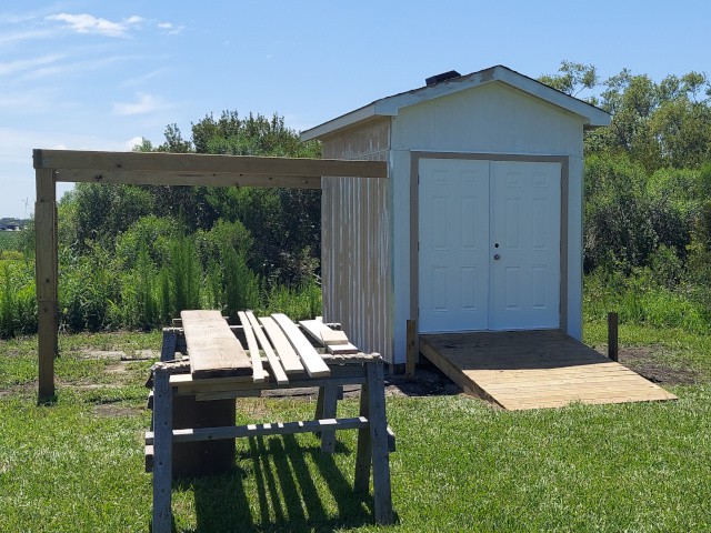 Following the completion of the shed, our safety fencing, work tables, and parking are will be relocated about 25-feet west of their current location.