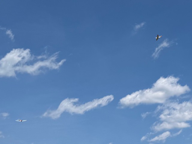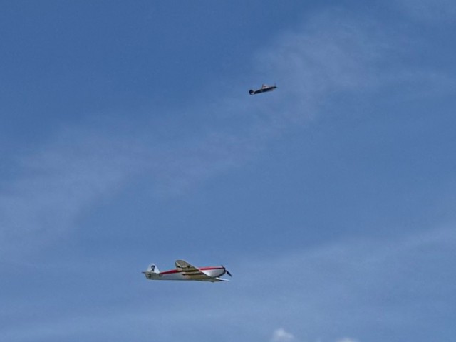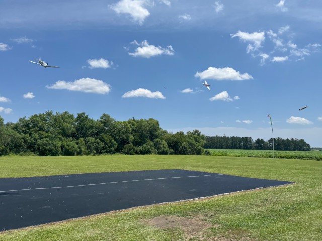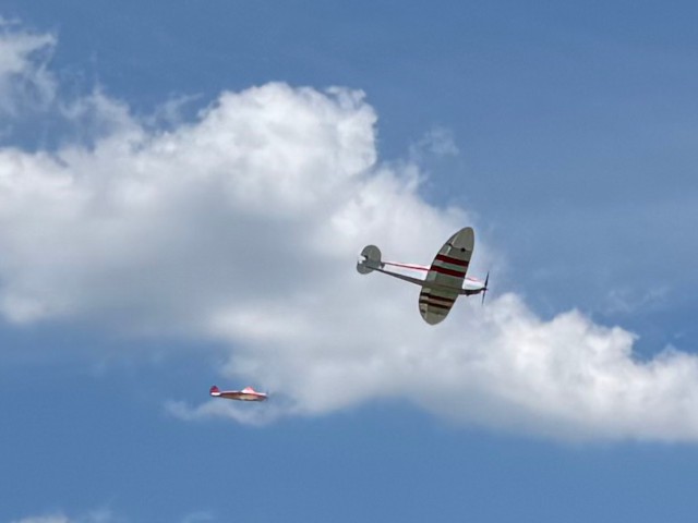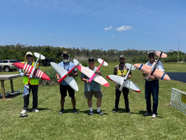 This year's races featured four club members and a pilot from the Hampton Roads Radio Control Club racing FliteTest Spitfires that each participant constructed in a figure-eight pattern around a pair of pylons, 300-feet apart. This was the second year for this event which consisted of three individual races in which the winners of each heat raced to determine the winner in the final event.