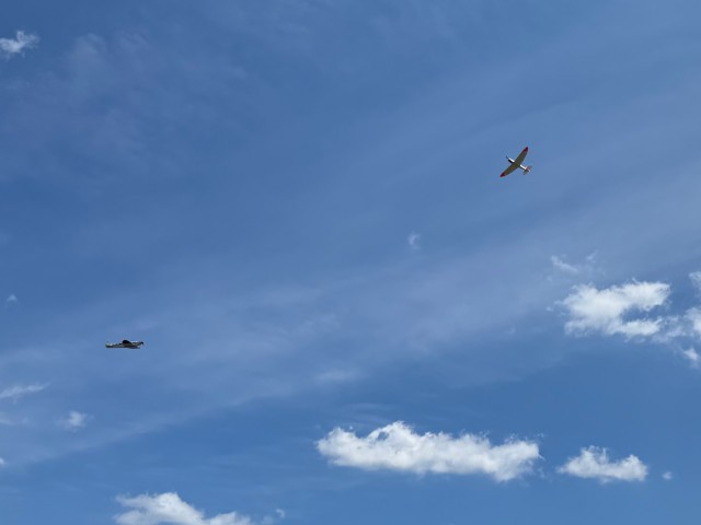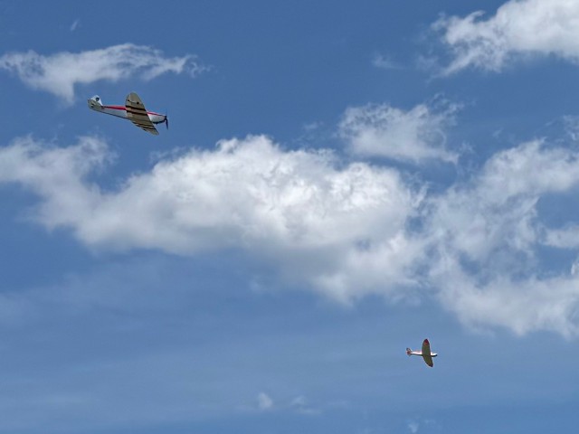 Thirteen club members and three guests met today at the field for some competitive flying for the 2025 First Flight Model Air Pylon Races.