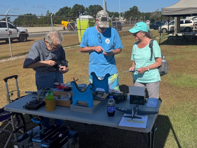 Grant Dick, Virgil Kee, and Robert Yanacek participated at the Victory Day Celebration at the Manteo Airport informing the public about our club, its activities, and the hobby of radio control model aviation.