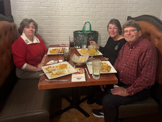 Seventeen members and guests attended our club's annual Christmas Party at Tres Tequilas Restaurante Mexicano in Kill Devil Hills. In attendance were: Frank and Emily Ausband; Pete and Rosemary Carros; Jim and Sharon Davis; Grant Dick; Bernie Feaganes; Peter Fynn; Kim and Anna Lloyd; Grant Peacock; Jim and Joyce Shiels; Robert and Diane Yanacek, and; Stephen Yanacek.