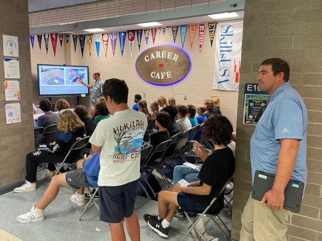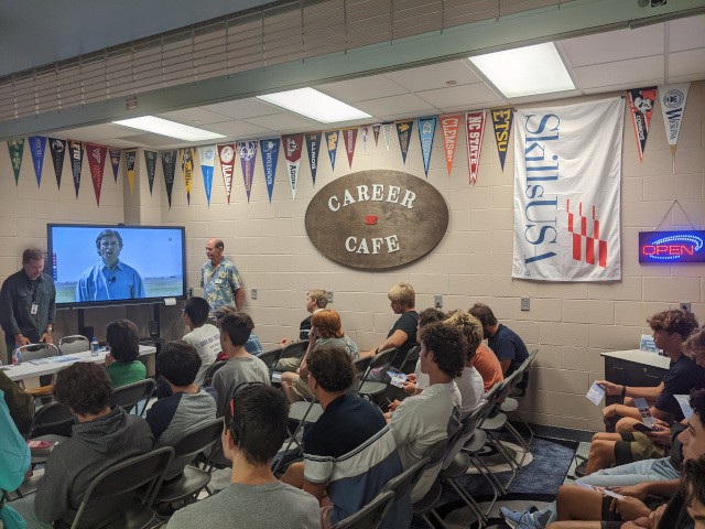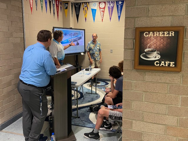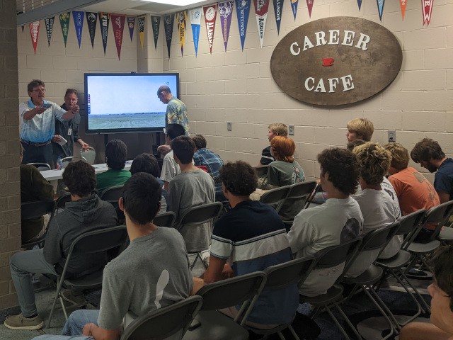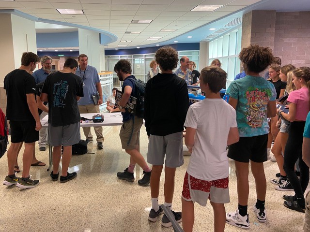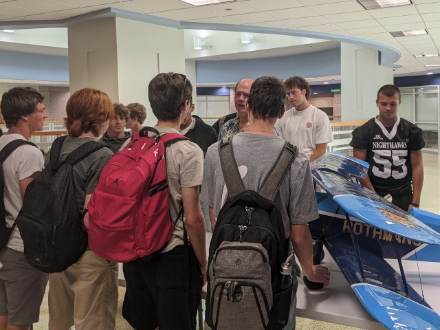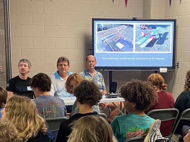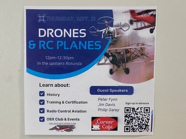 A busy day today for four club members who visited with forty-three students at First Flight High School in Kill Devil Hills to discuss pursuing radio control aviation as a hobby to acquire skills that could be used in the future within the developing drone industry.