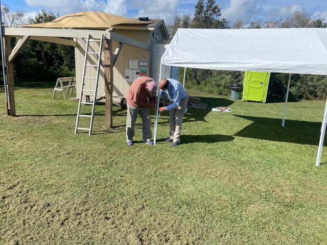 Jim Davis, Robert Yanacek, Skip Wescott, Allen Massey, and Peter Fynn cut the grass and set up the temporary shade and safety structures to ensure all would be ready.