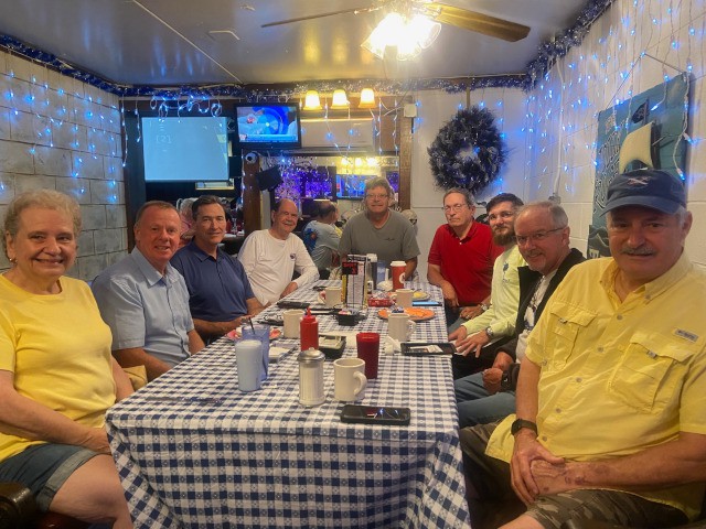 Eight of our pilots began today by meeting for breakfast at the Jolly Roger Restaurant. In addition to our pilots, Charlie Doss' wife Vicki joined us for breakfast and did her best to tolerate all the talk about airplanes before we headed to the field for a day of flying.