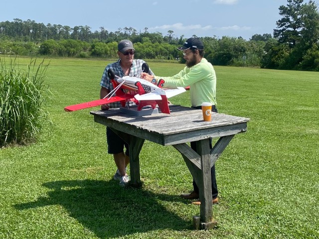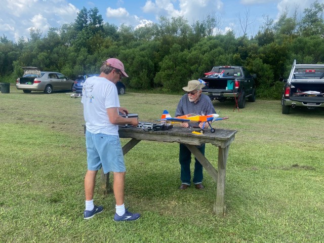 Seven club members met for breakfast today at the Jolly Roger Restaurant then headed out to the field to see if we could do some flying before thunderstorms moved into the area.