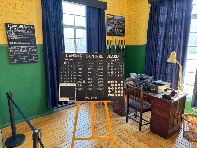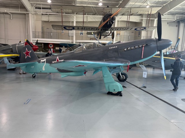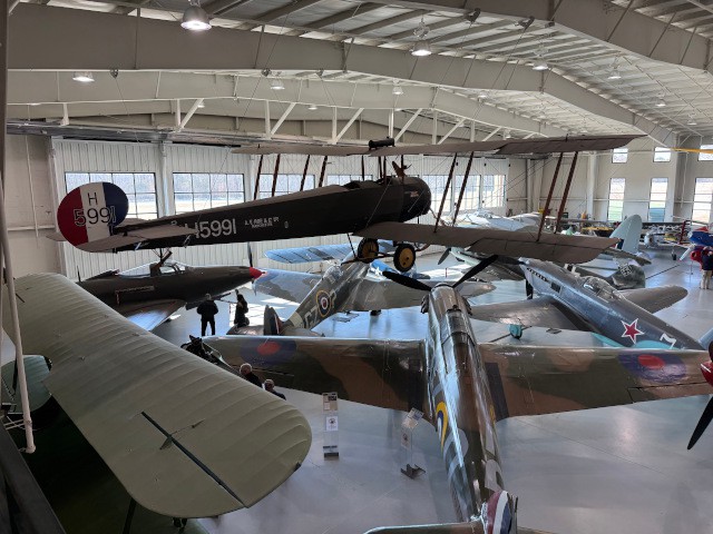 Jim Davis, Skip Wescott, Philip Garey, Peter Fynn, Chris Thompson, Jen Thompson, Cooper Thompson, Emmett Thompson, and Robert Yanacek spent the entire day viewing and learning about the over 50 World War I and World War II-era aircraft on display. In addition to the fully-operational airplanes, the museum's exhibits also included numerous vehicles, weapons, aviation-related equipment and structures, and even a Second World War-era control tower that was brought to the museum from Goxhill, England.