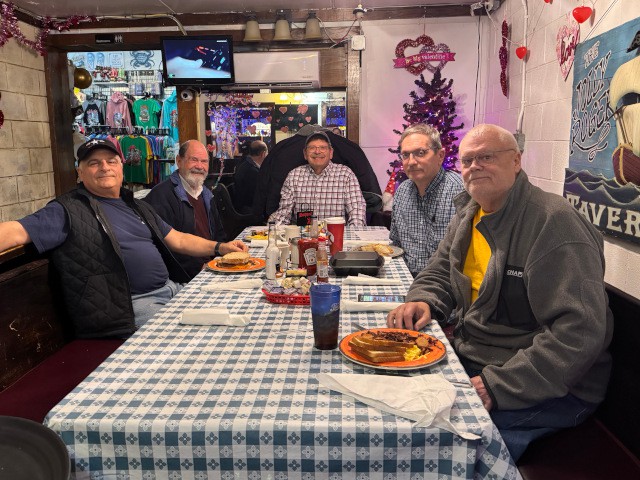 Since no club activities were planned for today, Pete Carros, Peter Fynn, Jim Davis, Robert Yanacek, and Skip Wescott met at the Jolly Roger Restaurant for breakfast and conversation about flying.