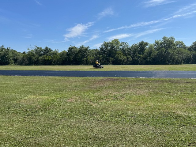 No flying activities were scheduled today, so Skip Wescott and Robert Yanacek took the opportunity to mow the grass at the field and trim around all the structures.