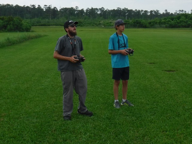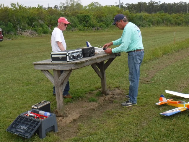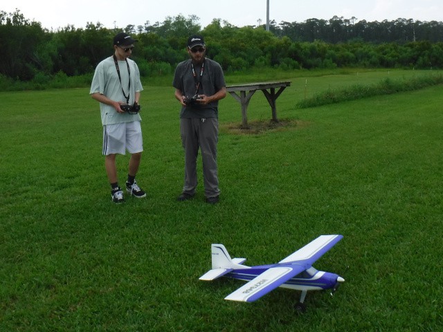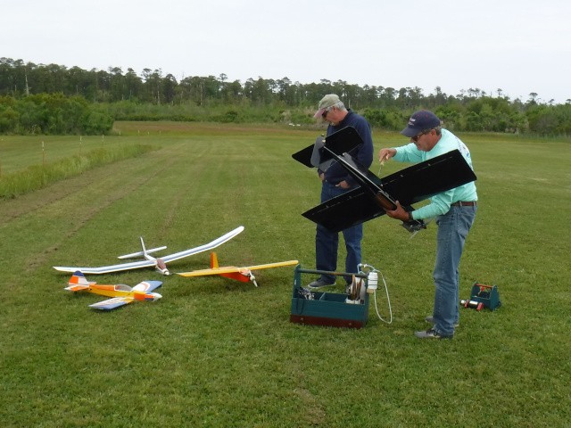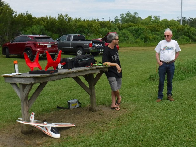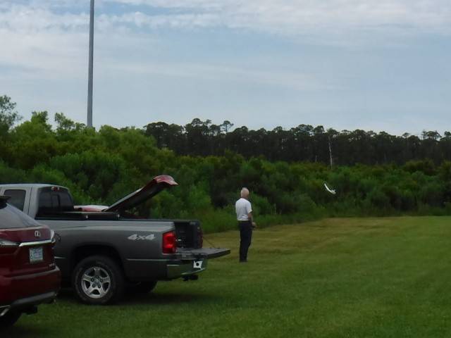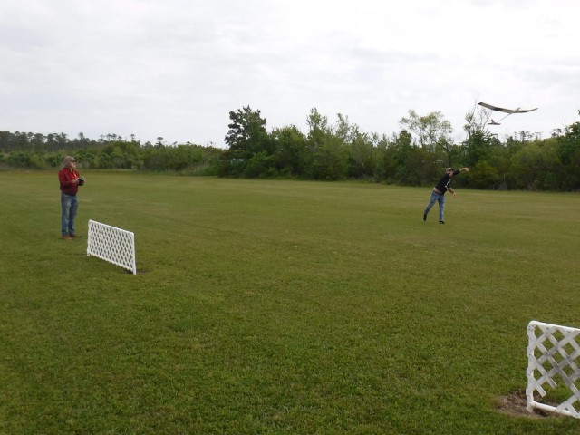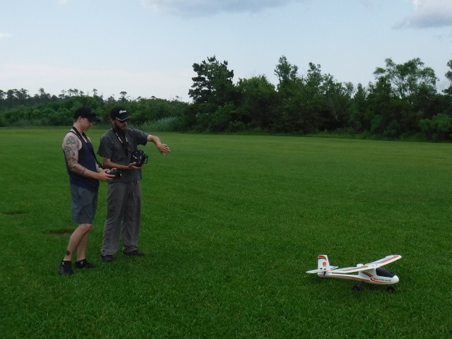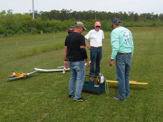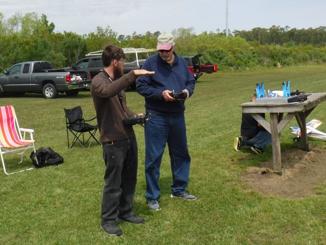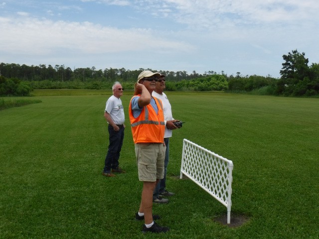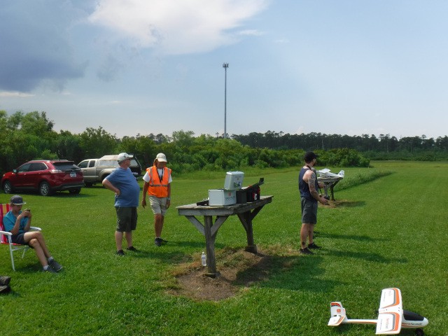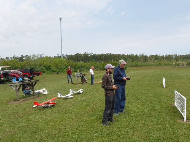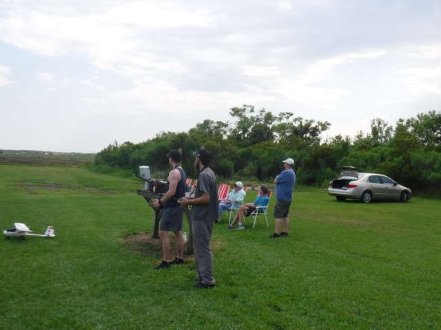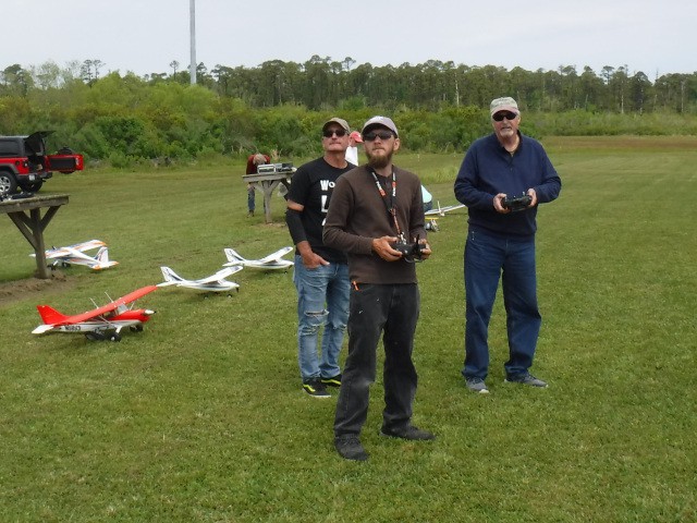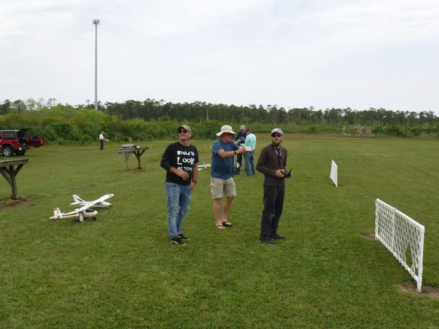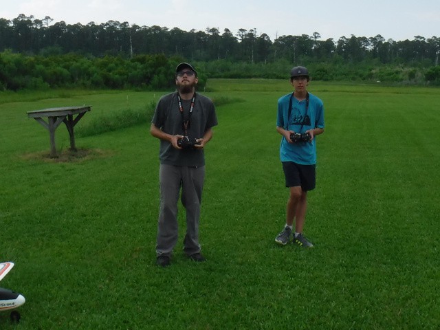 Two sons and three grandsons of local resident Rich Lewandowski joined us at the field today to give model aviation a try. Mark, Chris, Daniel, Philip, and Bryce Lewandowski were visiting the Outer Banks, and Rich made arrangements for them to spend the afternoon with us for some family fun and excitement under the overcast skies in Manns Harbor.