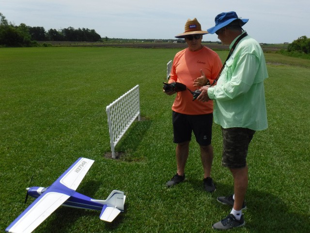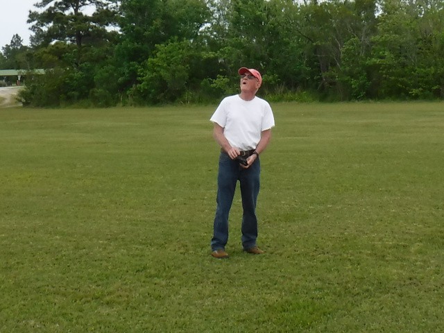 The highlight of the day was Stephen Yanacek introducing our guest, Charlie Doss, to radio control model aviation. Under Stephen's watchful eyes, Charlie performed a successful familiarization flight with Stephen's AeroScout S. With that flight completed, Charlie then flew a second time and successfully performed the entire fight, including both takeoff and landing.