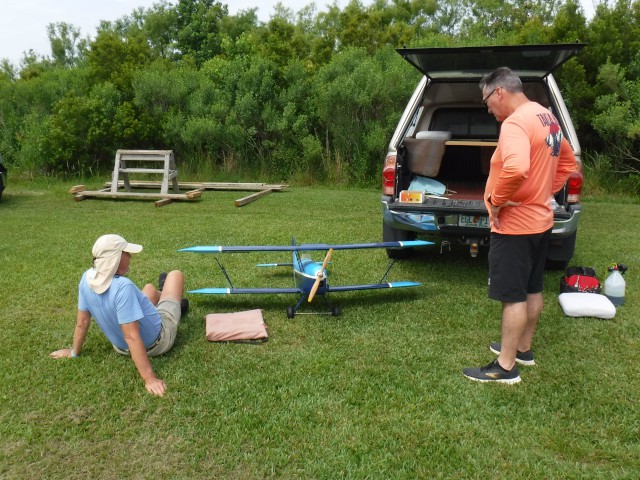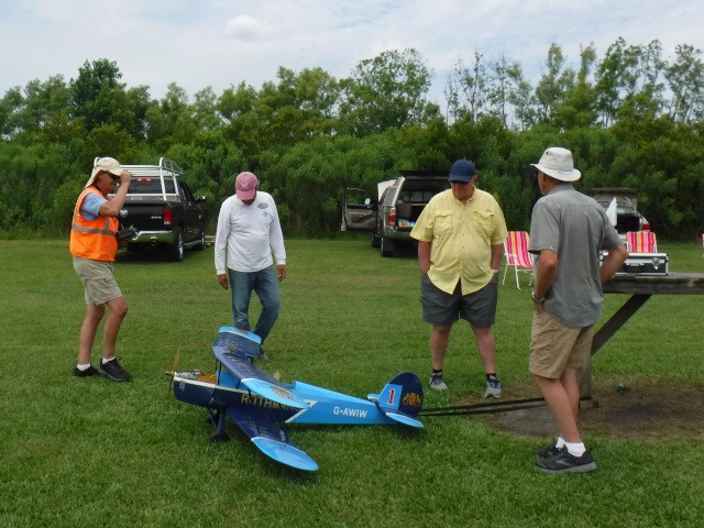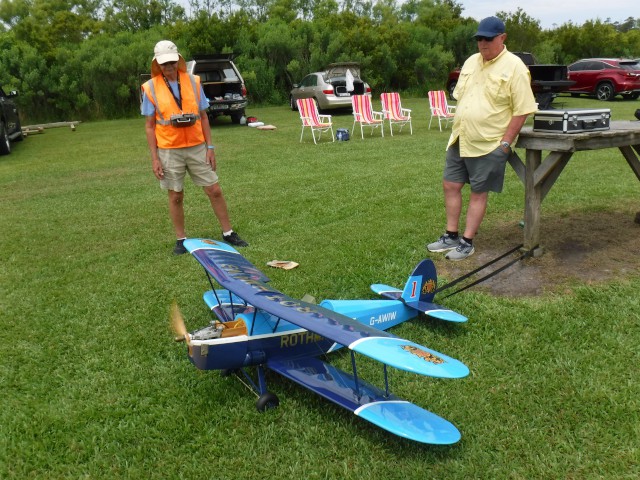 The day's excitement involved Peter Fynn performing engine and taxiing tests with his Stampe-Vertongen SV.4 biplane powered by a DLE 20 gas-powered engine. Both tests went well and Peter should have this plane into the air very soon.