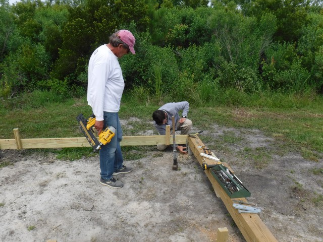 The day began at 8AM with six of our members meeting at the Jolly Roger restaurant for our popular "Pilot's Breakfast." Once breakfast was completed, we headed to the field and found our club president, Jim Davis, at work on the pilings for our new storage shed. While we unloaded our planes and equipment to begin the day's flight operations, Jim and Stephen Yanacek completed the work on the foundation so that actual construction of the shed could begin as soon as the necessary lumber is delivered.