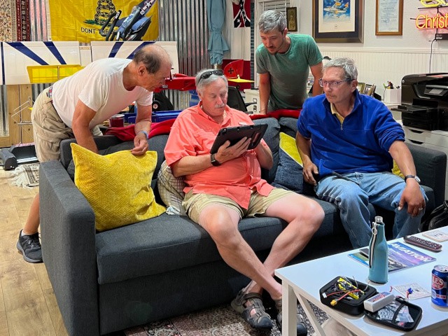 Since the winds today were to high to fly, Peter Fynn, Philip Garey, and Robert Yanacek met at Grant Dick's house to assist our newest member, Charlie Doss, in selecting and ordering his first aircraft. Our time to do this was extended to over three hours because we had such a good time chatting with with each other about airplanes and our latest projects. We also enjoyed seeing Grant's collection of aircraft which included a four-engine B-17F Flying Fortress, an American Champion Citabria, a Cessna 182 Skylane, and a Supermarine Spitfire.