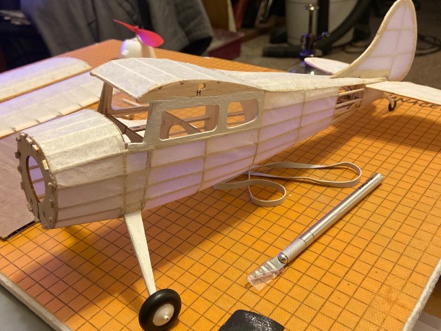 Our "homework" for this week will be to cover the entire fuselage before we meet next week to apply dope to all the covered surfaces.