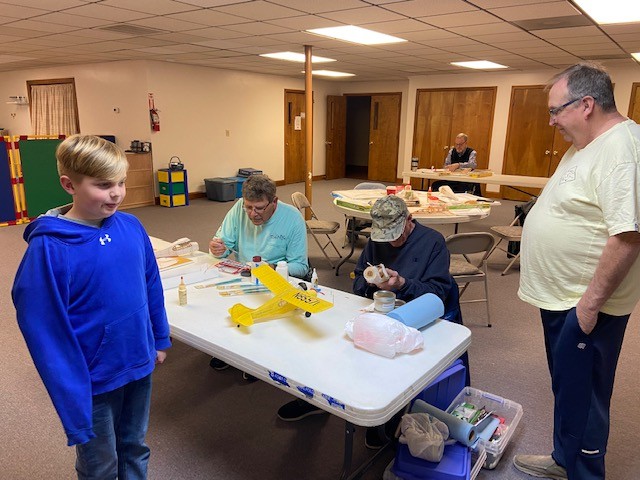 Jim Davis, Steve Smith, Philip Garey, Richard Boyd, Stephen Yanacek, Matt Cooke, Kolton Cooke, Robert Yanacek, and Jim Shiels met tonight to learn some basic model airplane building skills.