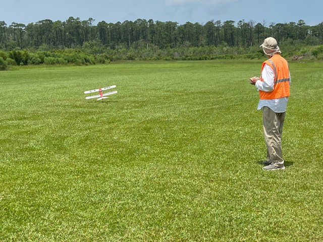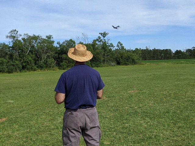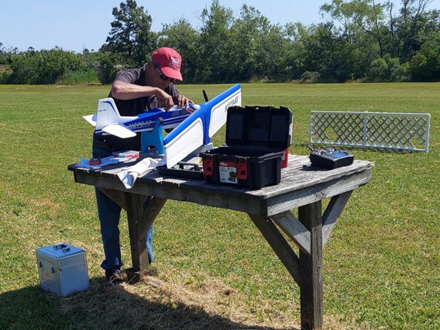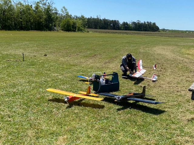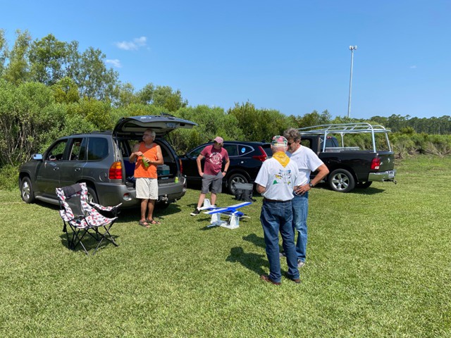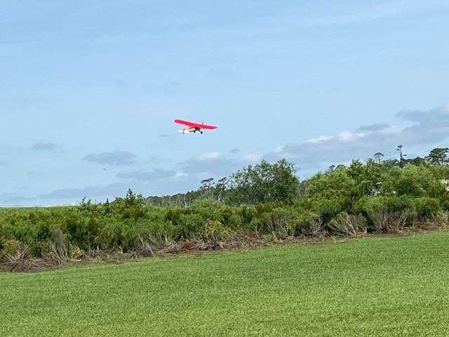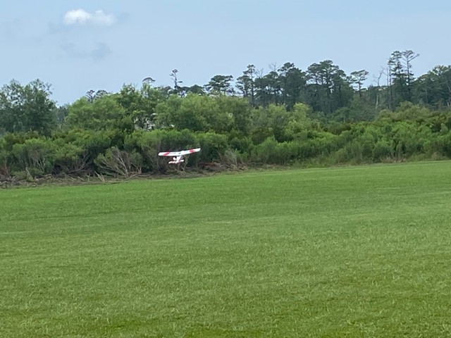 Eight of our members participated in a series of many flights today at our field in Manns Harbor. The wind was challenging with velocities higher than predicted, however all of our pilots performed well, enjoyed the flying and camaraderie, and brought their aircraft home without damage.