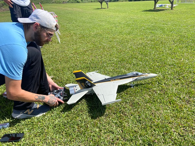 Matthew Huggins flew for the first time with our club and displayed excellent control and aerobatic skills with his DHC-2 Beaver. Matthew's maiden flight of his Freewing F-18 Hornet was stunning, but cut short when he lost his plane's motor in a puff of smoke after pushing his throttle wide open. Nonetheless, he was able to perform a beautiful dead-stick landing and recover his aircraft intact.