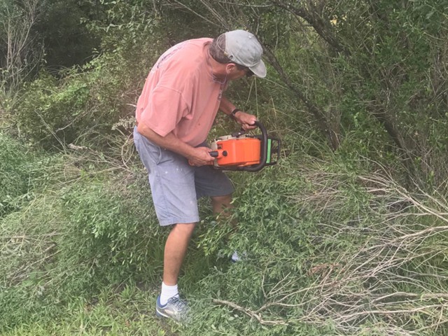Following flight operations, all four members turned to field maintenance activities and removed small trees and brush in the area that we plan to build our new storage shed.