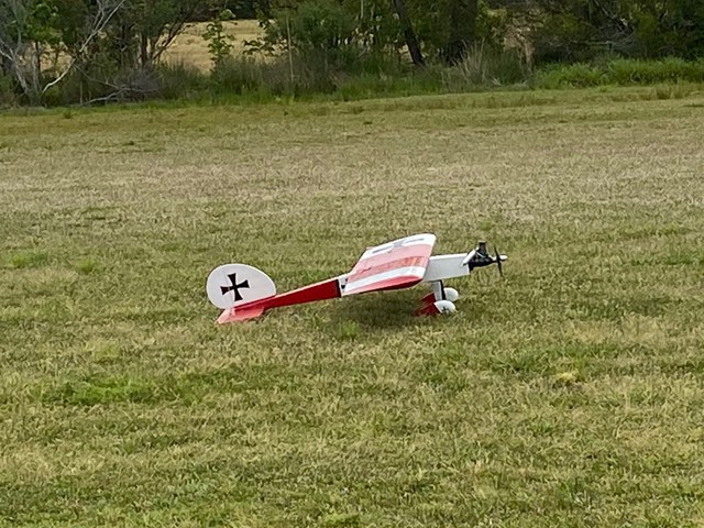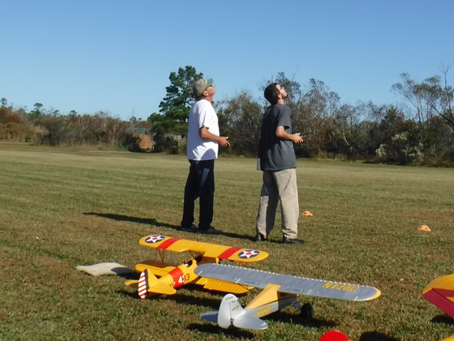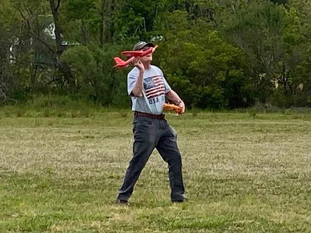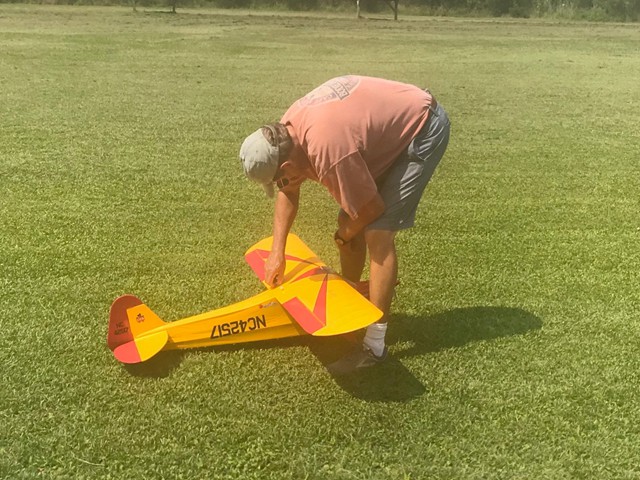 Flight operations commenced about noon, with each of our members taking turns flying various aircraft. Under the watchful eyes of instructor Jim Davis, student pilot Robert Yanacek also performed a maiden flight on his E-flite Valiant 480E.
