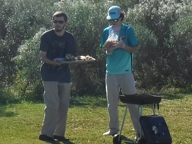 We gave demonstrations of gas and electric flight, plus a drone too! We set up a buddy box system and let everyone have a turn at flying a model airplane. The weather did not cooperate and it was windy making flying a little difficult. However the girls did very well and all had fun. Lunch consisted of grilled hot dogs, chips, brownies, water, and sodas.