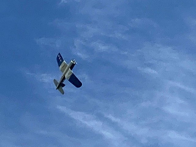 Steve Smith arrived at about 9AM and performed at least three good flights with his Great Planes Kunai sport glider. Robert Yanacek was next into the air with his E-flite Valiant which once again proved to be a great flying plane. Steve Smith then flew his nitro-powered Ugly Stick that he received from the estate of our late-member and friend, Lynn Lockrow. Peter Fynn then flew his Tiger Moth, unfortunately by that time the wind had picked up considerably and his flight was a very short one that ended in a very good landing thanks to his skill as a pilot. Grant Dick then flew his F4U Corsair in an attempt to overcome the 16 mile per hour winds with pure power. Grant made it look easy, however following a successful landing it became obvious that further flights in such winds would most-likely result in crashes.