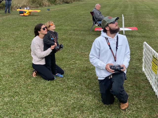 Corey and Krista McNeilly, along with their two young sons also joined us at the field today for their first time as official club members. They joined our club yesterday, along with their eldest son. Corey flew for the first time today and did very well with the instruction provided by Stephen Yanacek. Their oldest son, Patton, flew for his third time today, having previously flown twice at our public flying event in October. Patton flew well, assisted by Stephen's buddy-box and with a little help from Mom.