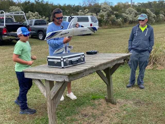 Foster is a new member of our club, and a middle-school student who attended the Outer Banks Festival of Model Aviation last month. He already owns and flies an AeroScout aircraft, however this new transmitter will undoubtedly take him to the next level of radio control modeling as it has greater capabilities than the one he currently uses.