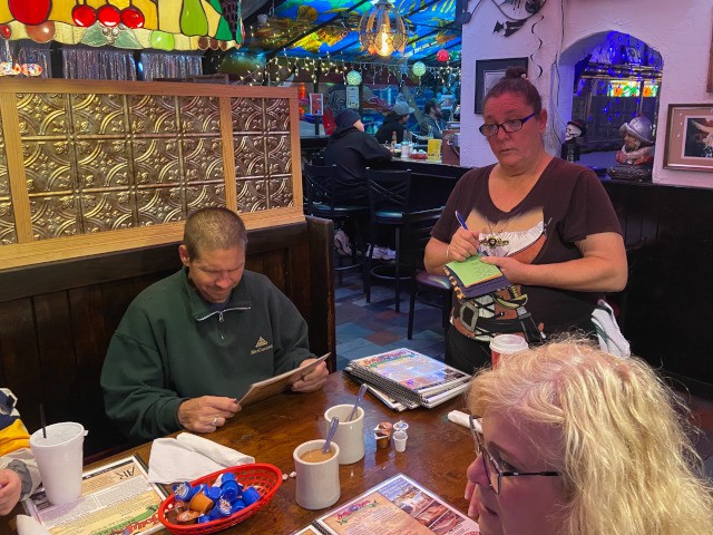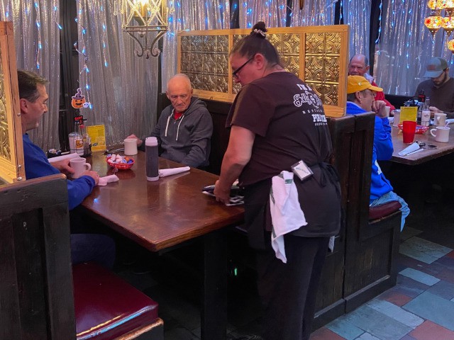 With the recent increase in club membership, we took our popular pilot's breakfast gatherings at the Jolly Roger Restaurant to the next level today by needing three tables to seat the twelve members and two guests who attended. However, despite the larger number of attendees, Heather, our server, still managed to provided us with the good food and excellent service we always receive.