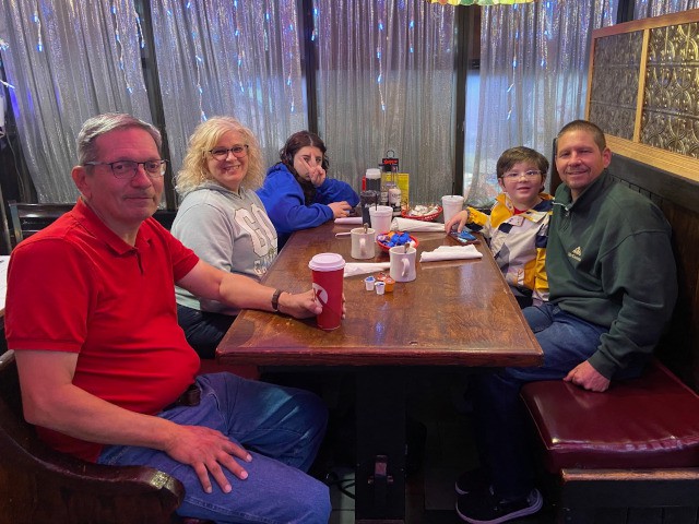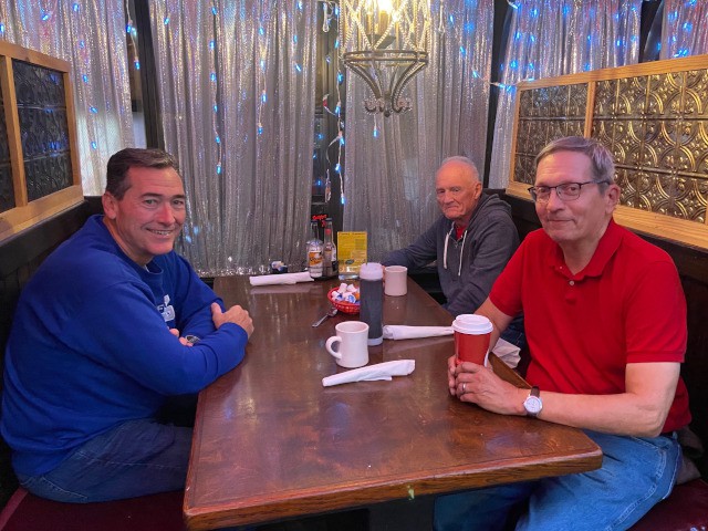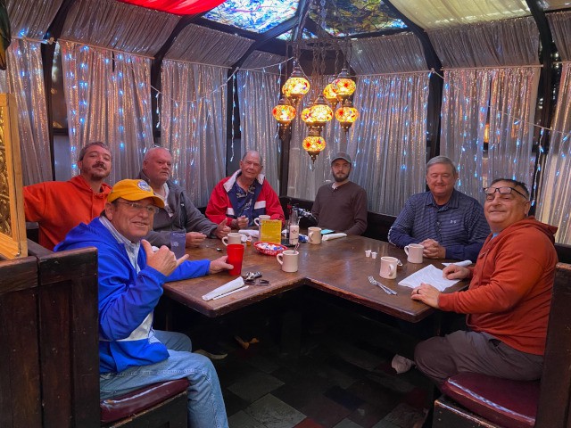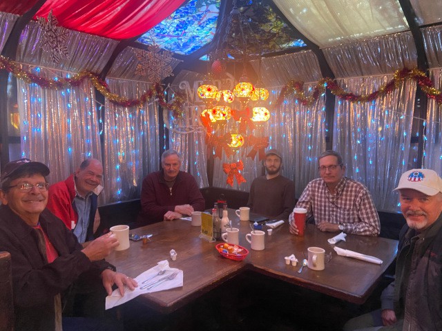 Jim Davis, Peter Fynn, Charlie Doss, Stephen Yanacek, Robert Yanacek, and Mike Kirkpatrick met today at the Jolly Roger Restaurant for breakfast and discussion if the weather conditions warranted a trip to the field to fly. Although most decided not to go, a few of us were at least able to enjoy some camaraderie and discuss ongoing projects and upcoming events, including our annual Christmas party.